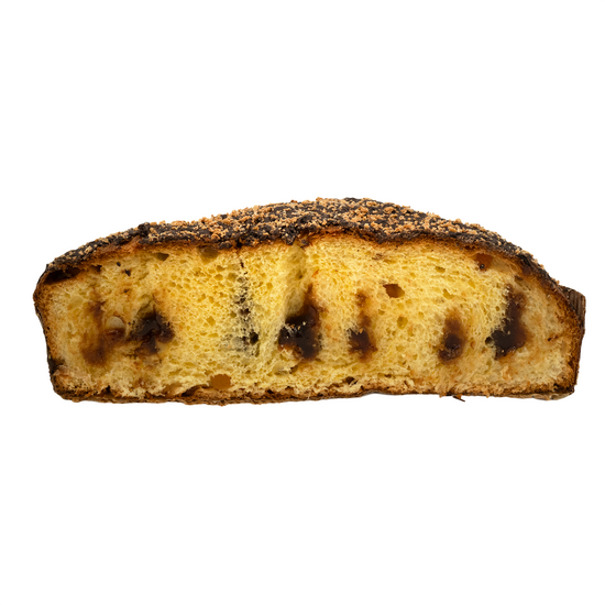 Wheat flour, macaron flavoured filling cream 12% [glucose syrup, sugar, water, powdered macaron 5% (sugar, almonds, egg white, lactose and milk proteins, leavening agent: sodium bicarbonate, natural flavours), sweetened condensed milk (partially skimmed milk concentrate, sugar), alcohol, modified corn starch, coloring agents: E150a-E150d, gelly agents: pectin, natural flavours, preservative: potassium sorbate], butter (milk), eggs, candied peach cubes 10,5% (peach cubes, glucose-fructose syrup, sugar, acidity regulator: citric acid), sugar, plain chocolate 8% (sugar, cocoa paste, cocoa butter, emulsifier: sunflower lecithin, natural vanilla flavour), macaron grains 3% [sugar, almonds, egg whites, leavening agents (ammonium)
