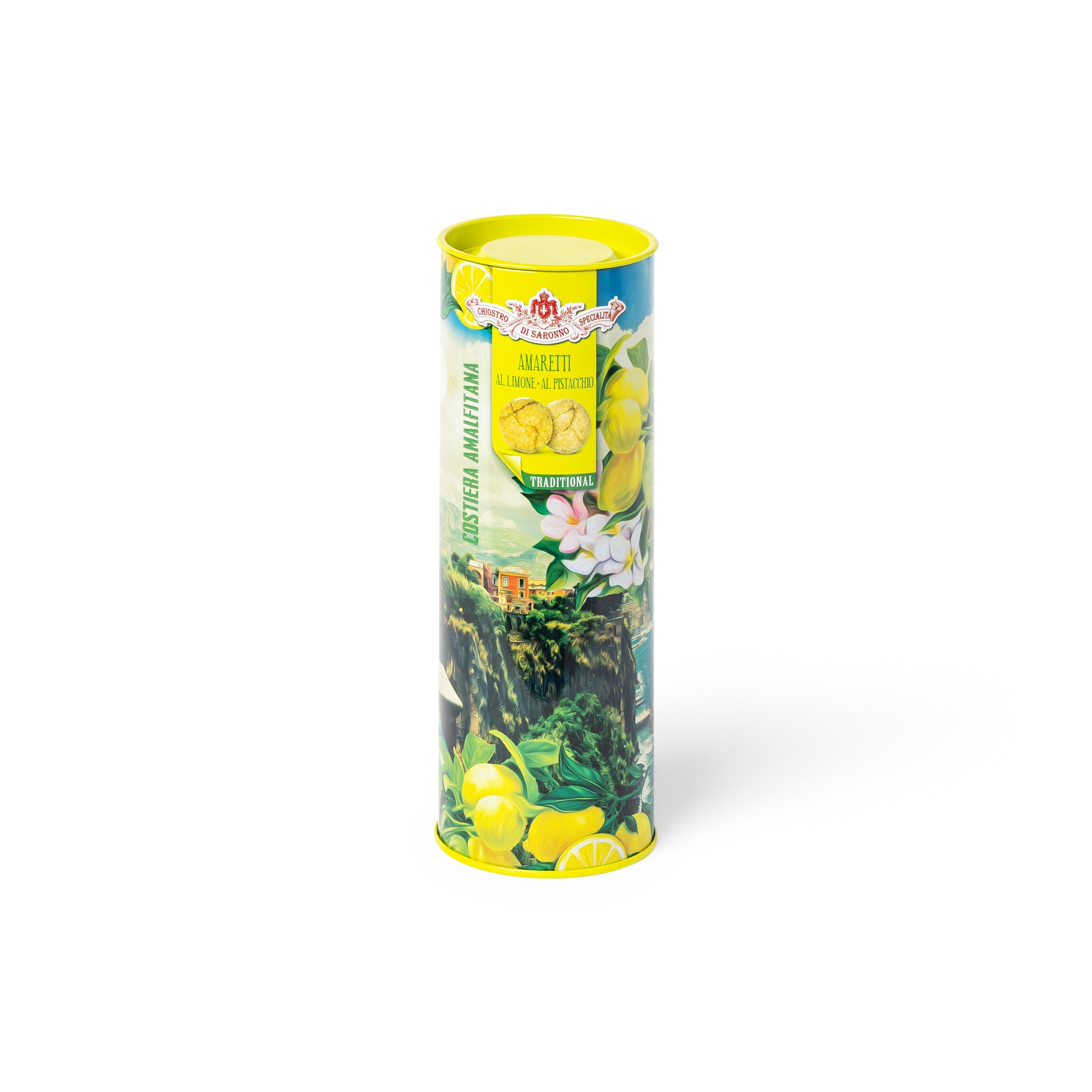 Mix di amaretti morbidi al limone e al pistacchio incartati in latta Amalfi